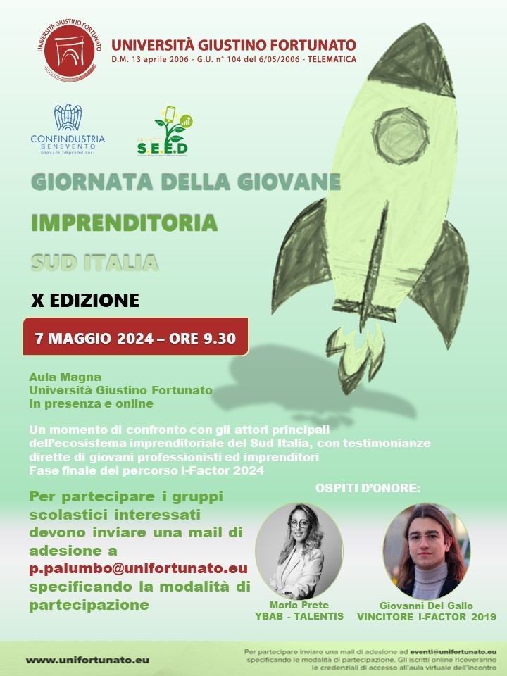 Il 7 maggio dalle ore 9.30 alle 12.30 si terrà la X edizione della Giornata della Giovane imprenditoria del Sud Italia, dedicata al mondo delle start up e dell'autoimprenditorialità.