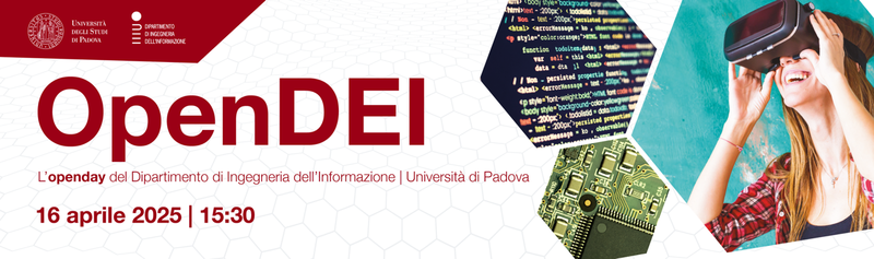 Il Dipartimento di Ingegneria dell'Informazione (DEI) dell'Università di Padova organizza un evento di orientamento interamente online rivolto agli studenti degli ultimi anni delle scuole superiori. L'evento si svolgerà Mercoledì 16 Aprile 2025 sulla piattaforma Zoom dalle 15:30 alle 17:30. Tutte le informazioni relative all'evento sono disponibili al seguente link tramite il quale è possibile iscriversi per partecipare: