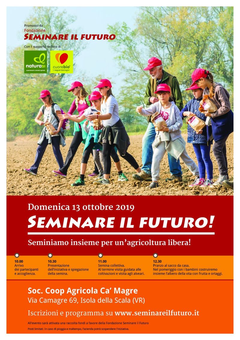 Segnaliamo l'evento "SEMINARE IL FUTURO!" previsto per domenica 13 ottobre presso la Soc. Coop Agricola Cà Magre di Isola della Scala.